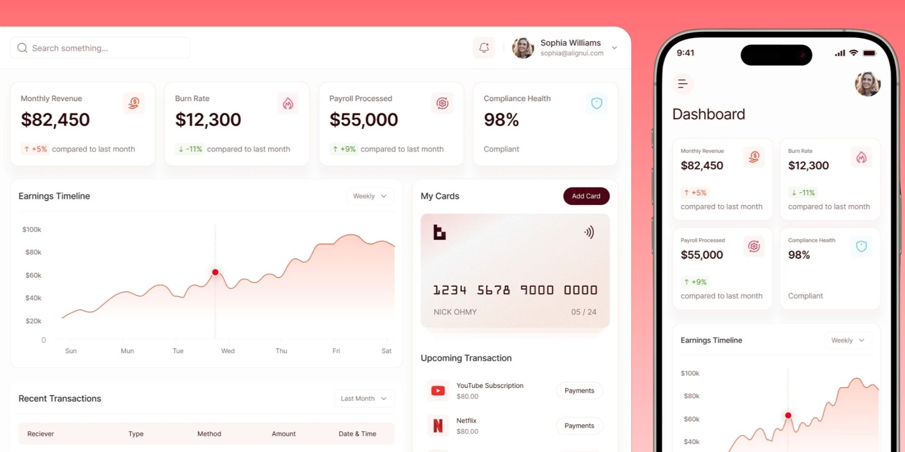 - Product Design, built a modular SaaS dashboard for startup founders to track revenue, burn, and runway in real time.