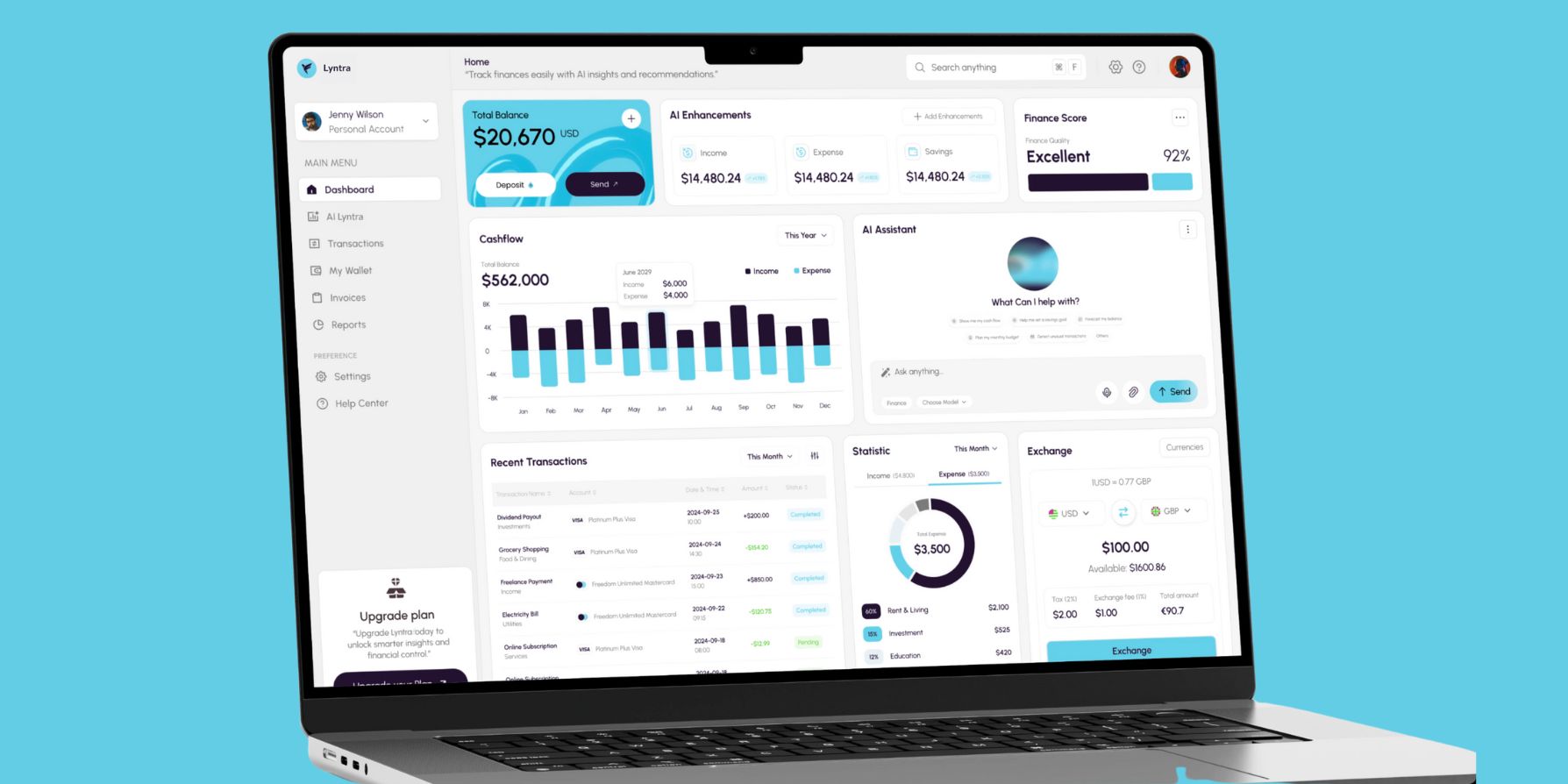 Egzecute designed a fully connected SaaS dashboard and website ecosystem that makes complex financial data feel approachable, actionable, and human, redefining how users interact with their money.